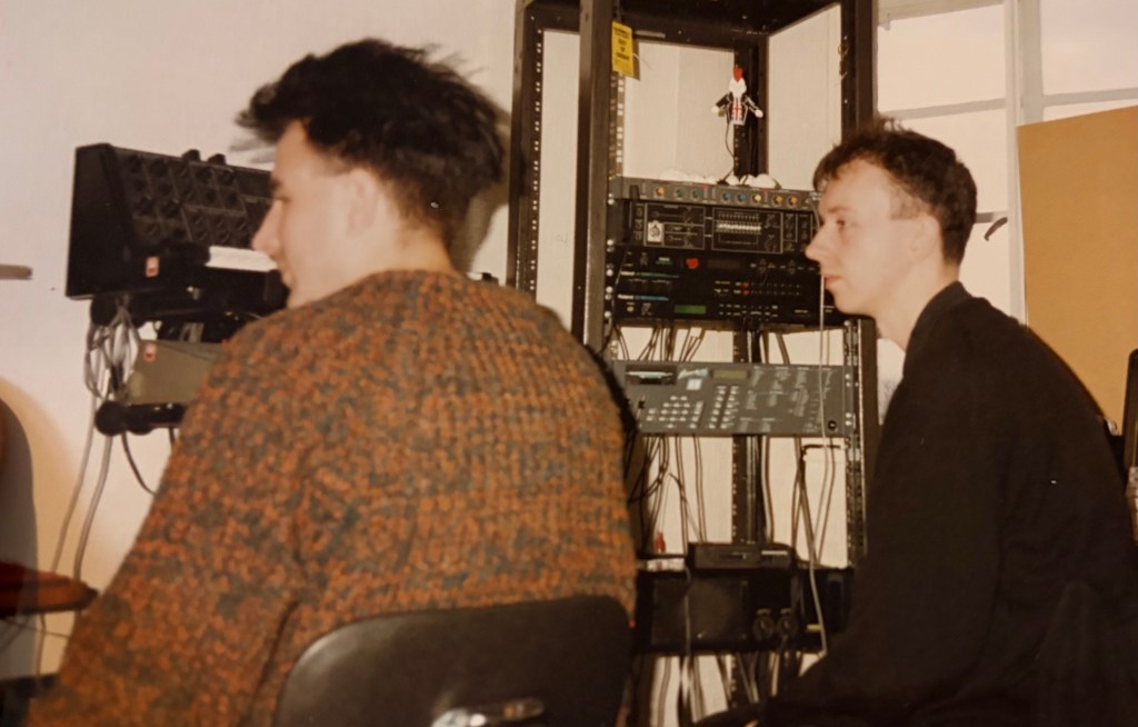 Whilst still at school, and deeply inspired by Cabaret Voltaire at the ‘Fetish Night Out’ at the Lyceum in February 1981, we began dabbling with more electronic-based/processed sounds. This became Nagamatzu, which was formed by Stephen Jarvis and me. Andrew Fleck joined later…